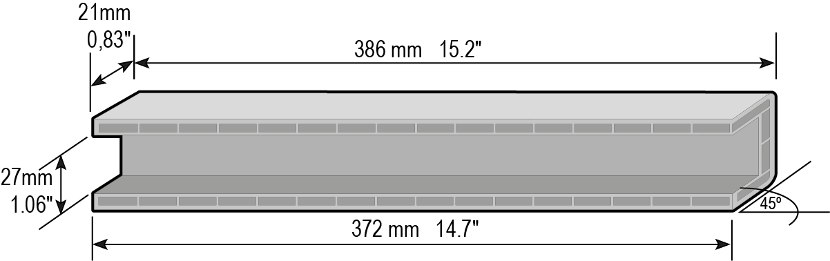 Tread Return Dimension | 122 cm / 38.6 L cm x 4.4 cm x 2.1 cm W (14.7"/15.2" L x 1.7" / 0.83" W) |